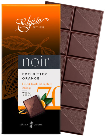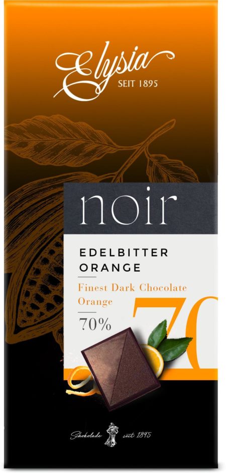 In der dunklen Schokolade Elysia Noir 70% spiegelt sich unsere innige Liebesbeziehung zur Kakaobohne wider. Manchmal ist mehr eben mehr. Doch einzigartig wird diese Schokolade erst durch die Kombination von dem herben Kakaoaroma und der ätherischen Zitrusfrische des Orangenöls.