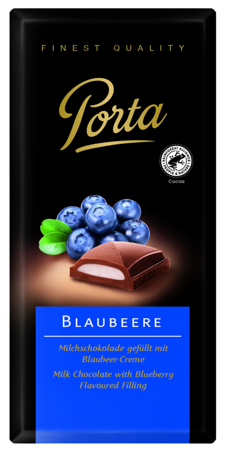 Nicht nur verbotene Früchte schmecken süß. Wie das gehen kann, zeigt unsere Schokolade Porta Blaubeere. Die knackige Milchschokolade mit aromatischer flüssiger Blaubeer Creme Füllung vereint zarten Schmelz mit fruchtig-süßen Geschmacksnuancen. Einfach zum dahinschmelzen!