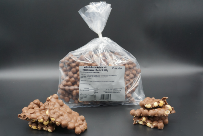 Unsere beliebten 500 g Beutel sind jetzt in unserem Online-Shop erhältlich. Lassen Sie sich von diesem einzigartigen Geschmack verzaubern und genießen Sie gemeinsame Momente mit Freunde und Familie! Leckere Haselnüsse, umhüllt von Vollmilchschokolade, ergeben eine wunderbare Geschmacksbalance.