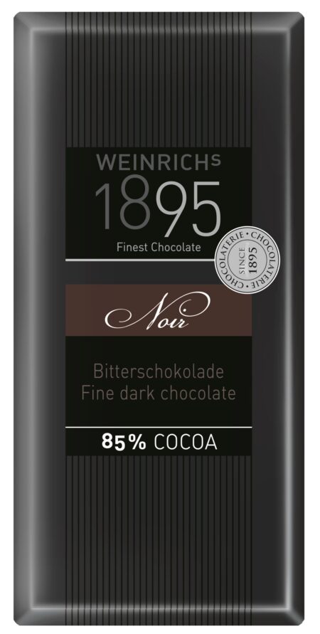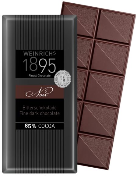 Die Hochprozentige! Unsere edle Zartbitter- Schokolade mit einem Kakaogehalt von 85% kommt zwar herb daher, hat aber einen unwiderstehlich cremigen Kern. Ihr herrliches kräftiges Aroma ist eine Liebeserklärung an alle Liebhaber*innen dunkler Schokolade.