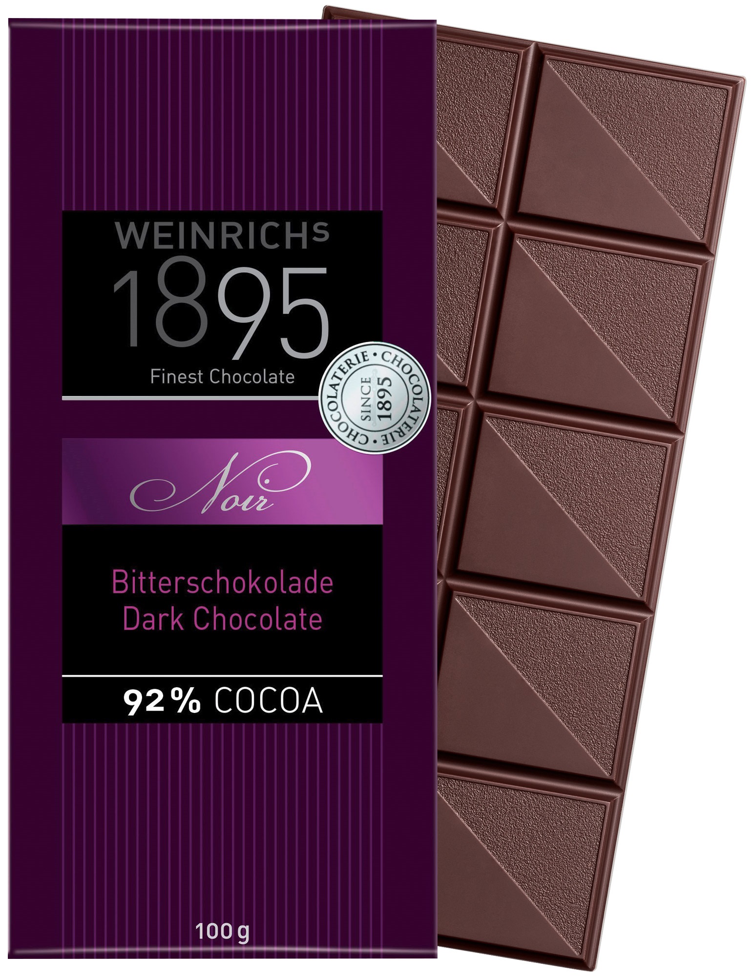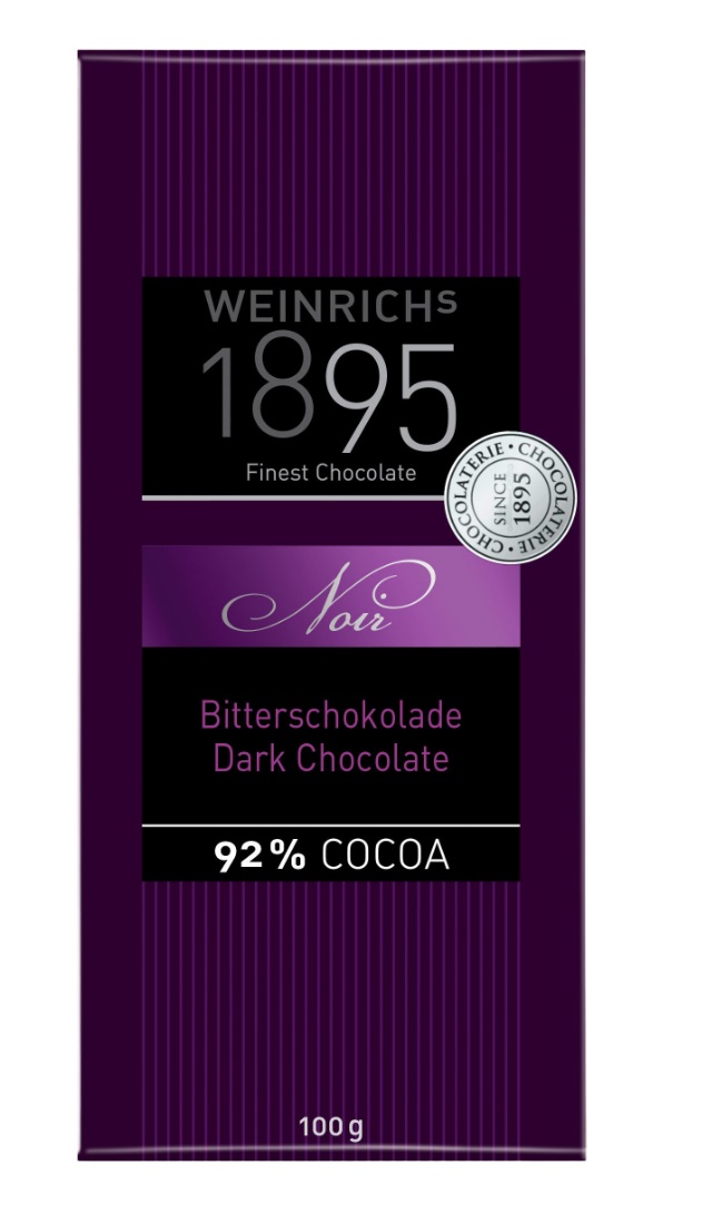 Die Kräftige! Für alle, die nie weniger als 92% geben. Diese Schokolade ist eine exklusive Spezialität für Verehrer*innen der Kakaobohne – und hier steckt eine Menge davon drin! Aufgrund langer Conchierzeiten bleibt sie trotz des hohen Kakaoanteils dennoch betörend zart schmelzend.