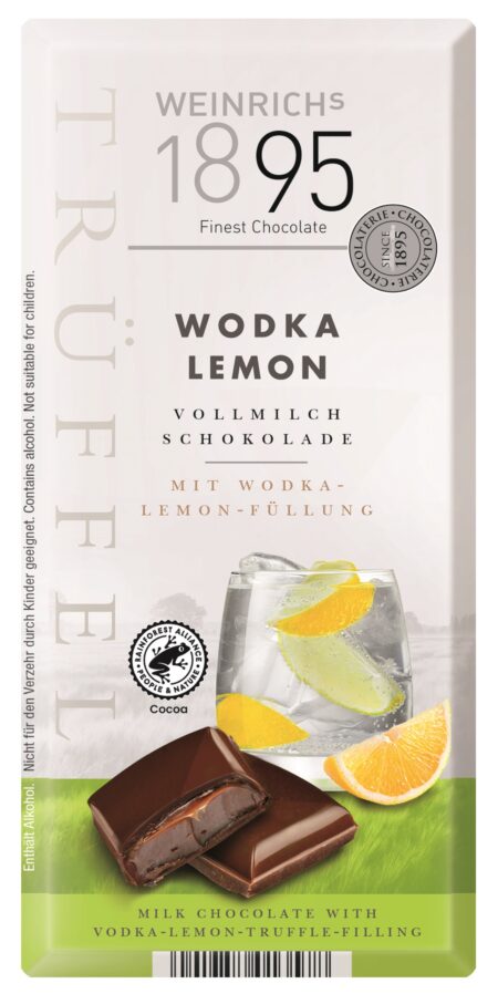 Schokolade wärmt das Herz! Ob allein, zu zweit oder gemeinsam: Genießen Sie unsere zarte Vollmilchschokolade mit einer Trüffel Wodka Lemon Füllung und schaffen Sie sich Ihre kleine Auszeit vom hektischen Alltag.